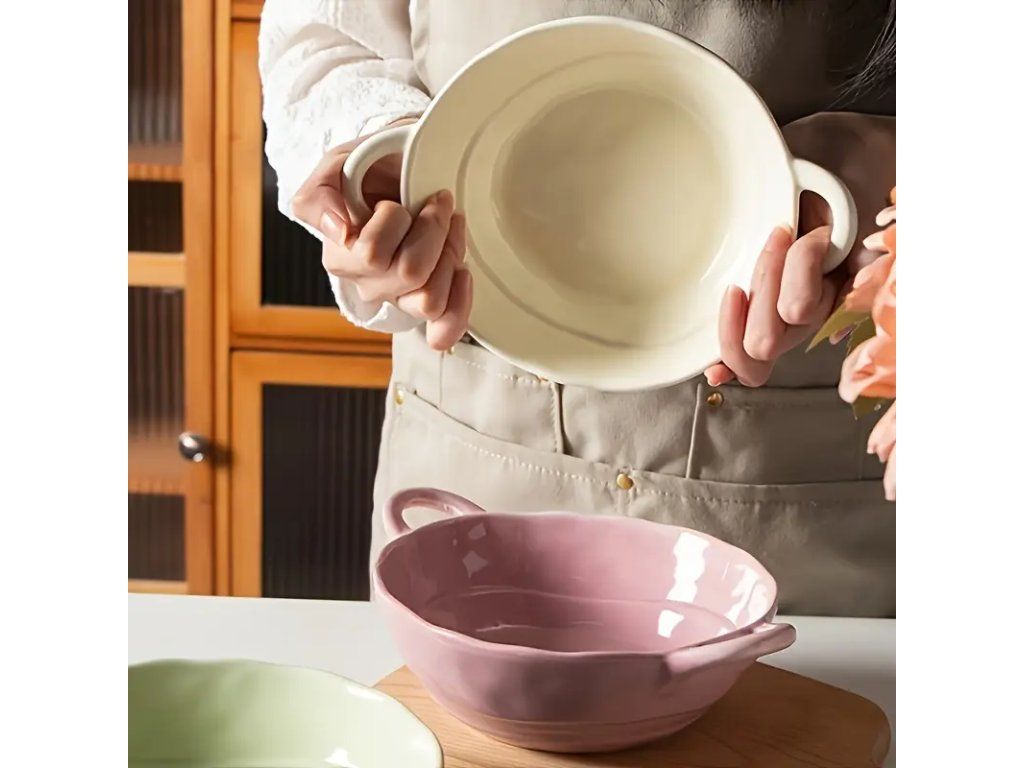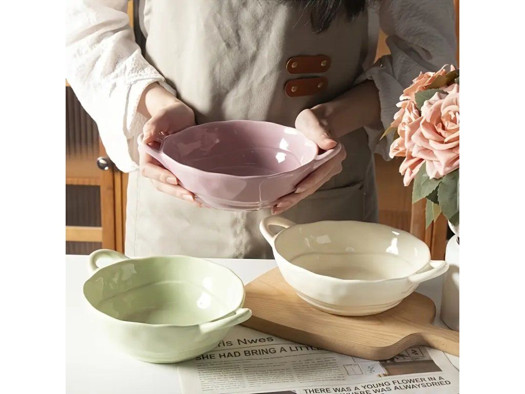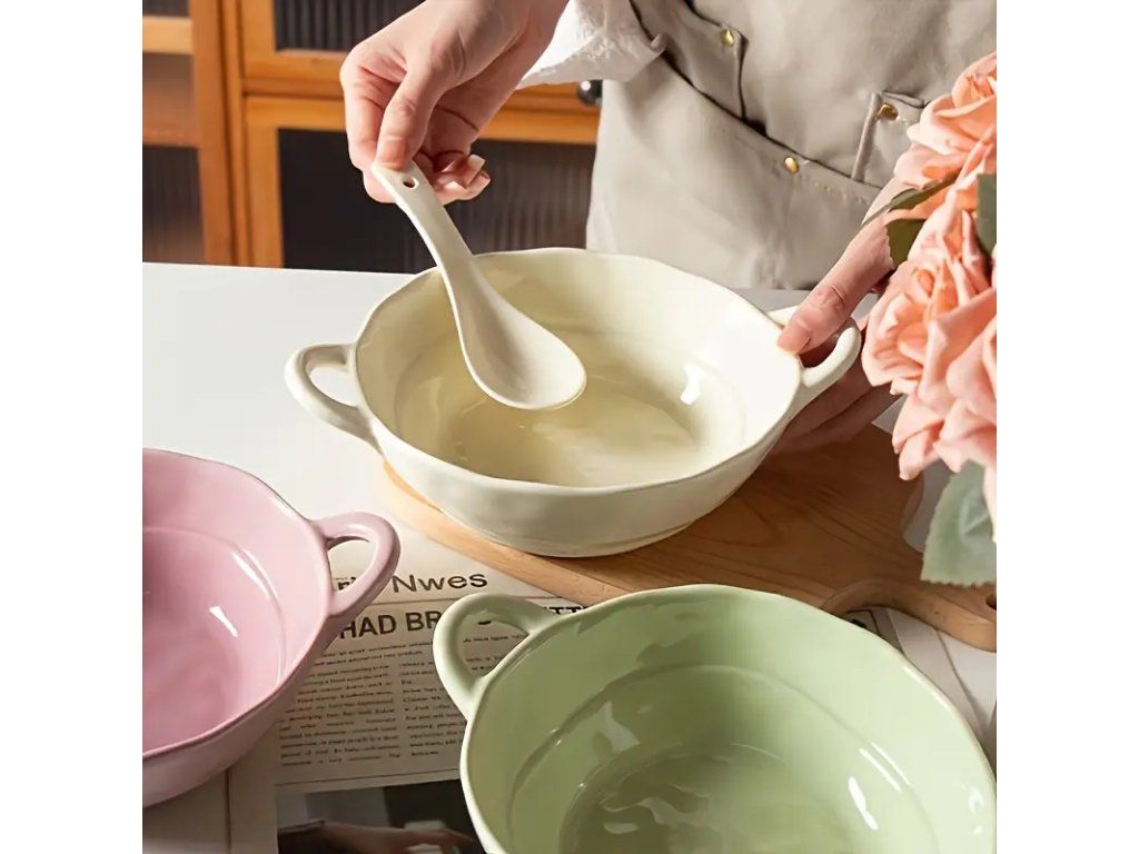 Velké keramické misky s uchy pro polévky a těstoviny – sada 6 kusů. Kvalitní keramika s hladkým glazovaným povrchem zajišťuje snadnou údržbu a odolnost proti oděru. Ergonomická ucha umožňují bezpečné a pohodlné podávání horkých pokrmů. Vhodné pro servírování polévek, těstovin, rizot a jiných teplých i studených jídel. Univerzální design se hodí do moderních i klasických kuchyní. Technické vlastnosti: prostorný objem každé misky poskytuje dostatek místa pro hlavní chod, rovnoměrné vedení tepla zaručuje udržení teploty pokrmu. Misky jsou vhodné pro mytí v myčce nádobí a použití v mikrovlnné troubě (dodržujte pokyny výrobce). Sada 6 kusů je ideální pro rodinné stolování nebo pro hosty. Praktické a estetické řešení pro každodenní i slavnostní servírování, které kombinuje funkčnost s elegantním vzhledem.Buďte první, kdo napíše příspěvek k této položce.