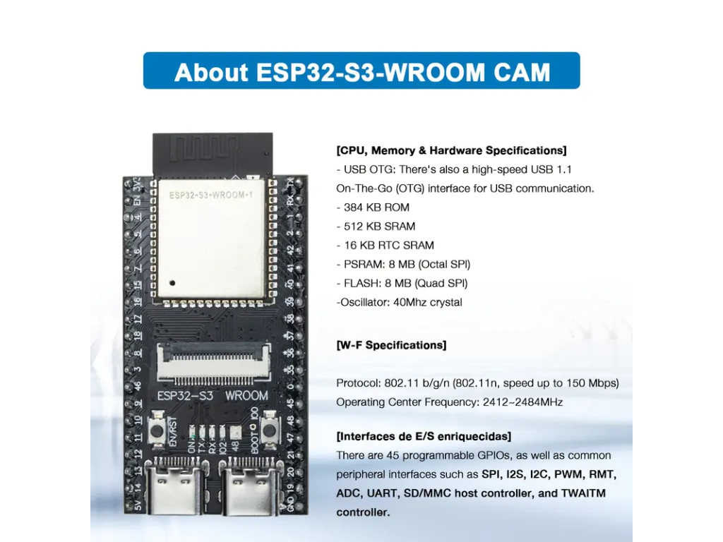 Vývojová deska ESP32 S3 s kamerou WiFi Bluetooth pro IoT a AI