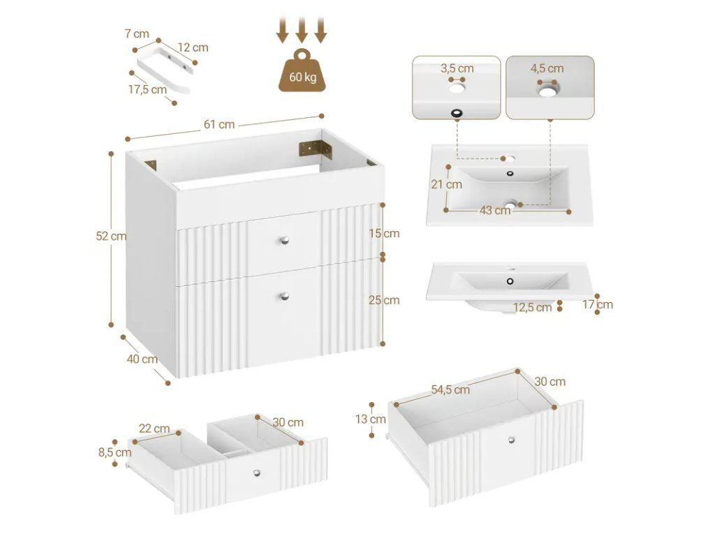 Moderní závěsná skříňka s umyvadlem nabízí kombinaci elegantního designu a praktické funkčnosti pro vaši koupelnu. Vyrobena s důrazem na pevnost a odolnost, poskytuje dostatek úložného prostoru pro hygienické potřeby a usnadňuje údržbu díky hladkým povrchům. Závěsný systém umožňuje snadné čištění podlahy a působí vzdušnějším dojmem v interiéru. Integrované umyvadlo je navrženo s ohledem na ergonomii – pohodlné používání a minimalizace stříkání vody. Skříňka je vhodná do moderních i klasicky řešených koupelen, dostupná v několika barevných provedeních a povrchových úpravách, které se snadno kombinují s ostatním koupelnovým vybavením. Jednoduchá montáž a pevné kovové úchyty zajišťují stabilní upevnění na stěnu. Ideální volba pro ty, kteří hledají stylové, prostorově úsporné a praktické řešení úložného prostoru v koupelně.Buďte první, kdo napíše příspěvek k této položce.